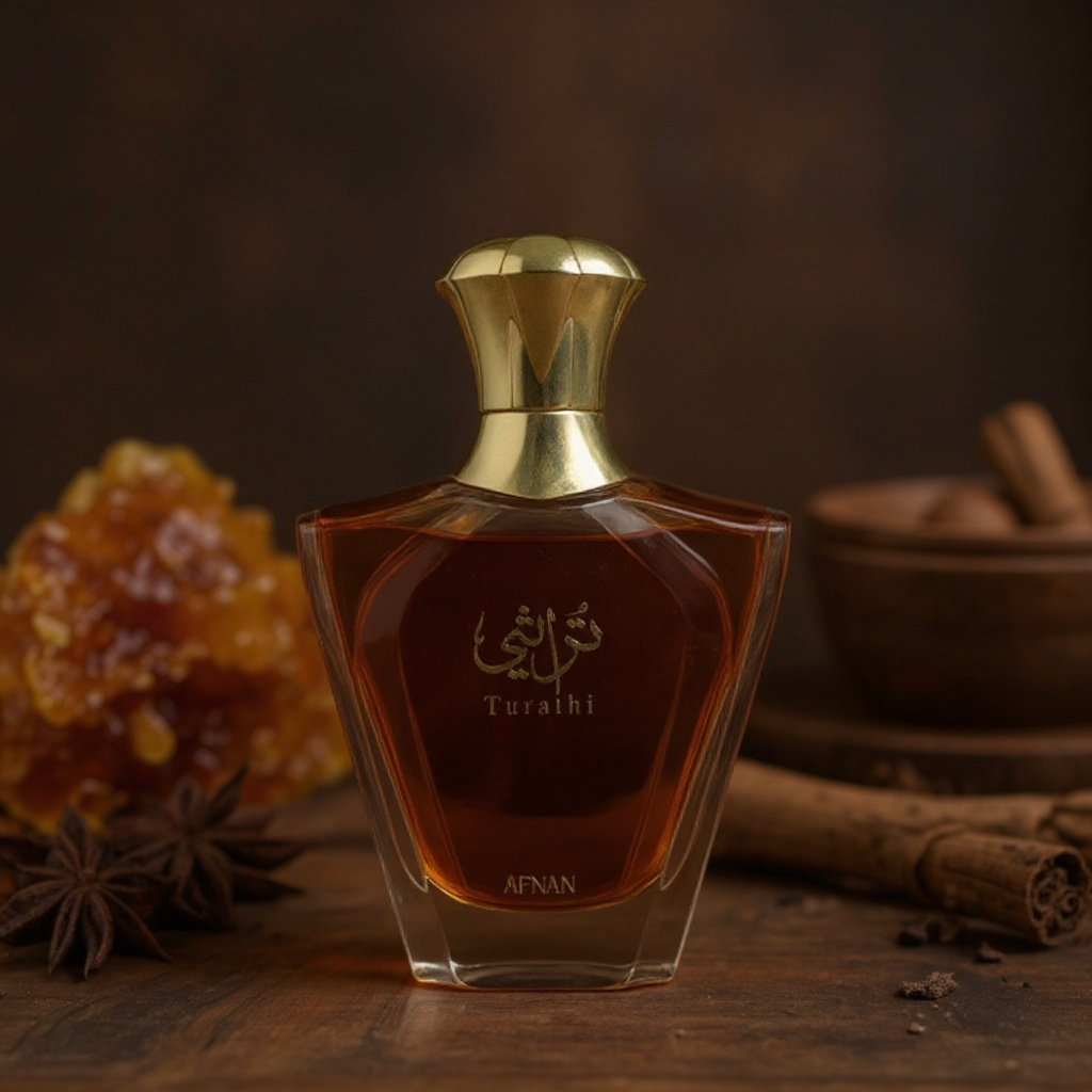Turathi Brown é uma fragrância que combina a elegância madeireira com o calor das especiarias e a doçura subtil da baunilha, resultando numa assinatura olfativa masculina de presença firme. As notas de saída envolvem âmbar, patchouli e acordes ozónicos que criam uma introdução rica e moderna. No coração, destacam-se especiarias aromáticas e baunilha que conferem um carácter intenso e envolvente. A base revela facetas balsâmicas, uma rosa subtil e nuances aquáticas que prolongam o rasto com profundidade e mistério.