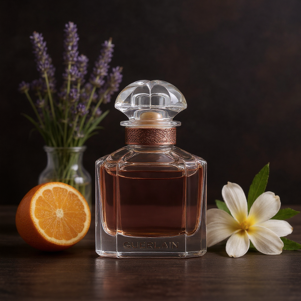 O Mon Guerlain Eau de Parfum Intense abre com uma baunilha cremosa e envolvente, já desde o início mais densa e doce do que a versão original. Logo se juntam notas de lavanda fresca e cítricos, que trazem equilíbrio e luminosidade. No coração sente-se um bouquet floral de jasmim sambac e íris, que acrescenta sofisticação e feminilidade. Na base, o sândalo, o patchouli e o alcaçuz reforçam o lado quente, oriental e sensual do perfume. O resultado é um aroma marcante, doce e elegante, com assinatura gourmand e intensa, ideal para noites ou ocasiões especiais.